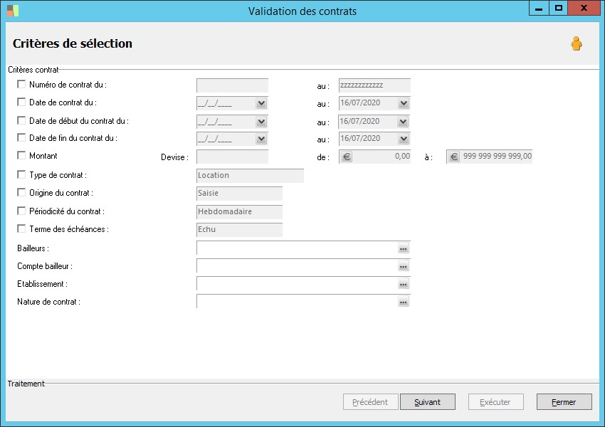 Ce paramètre permet de faire une sélection sur la date de contrat (si la case est cochée). |