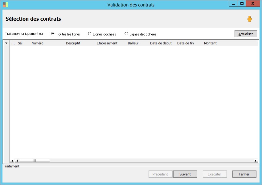 (Sage FRP 1000 Comptabilité) Menu Immobilisations > Contrats > Validation des contrats