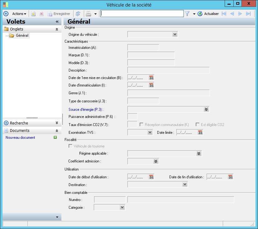 (Sage FRP 1000 Comptabilité) Menu Immobilisations > Véhicules > Véhicule de la société
