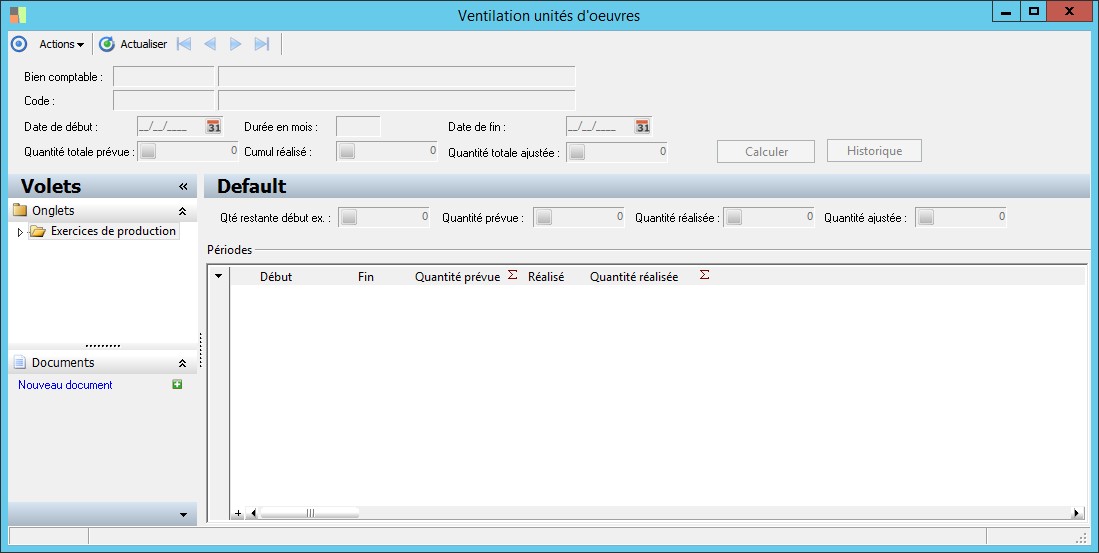 Pour chaque exercice ouvert, il est faut déterminer un nombre d'unités d'?uvre prévues pour chaque période ouverte. Il est également possible de saisir un nombre d'unités d'?uvre réalisées.