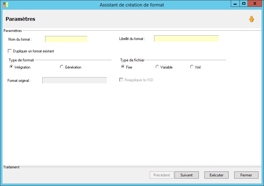 Spécifie le type de format (Plat, XML ...) |