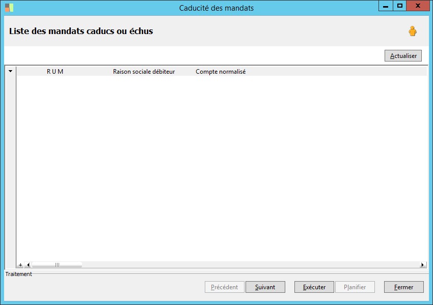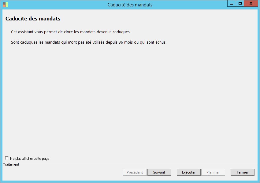 (Sage FRP 1000 Comptabilité) Menu Banque Paiement > Paramètres > Tiers > Caducité des mandats