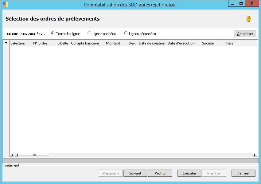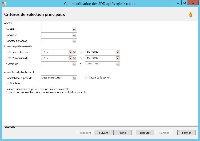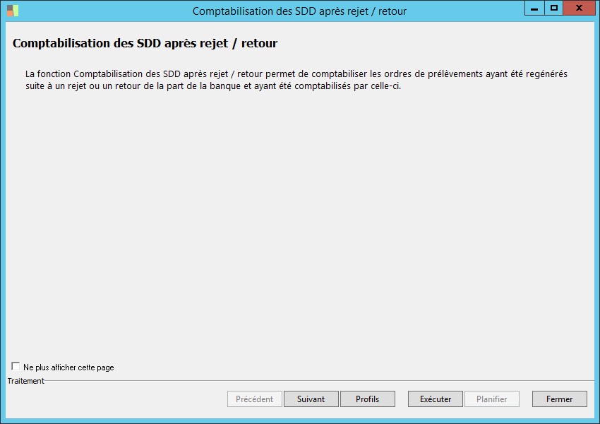 (Sage FRP 1000 Comptabilité) Menu Banque Paiement > Comptabilisation > Comptabilisation des SDD après rejet / retour