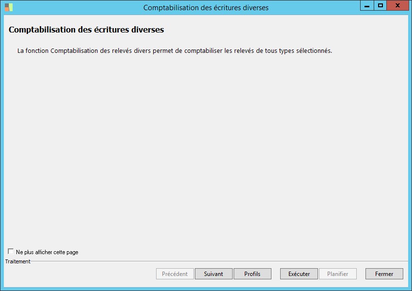 (Sage FRP 1000 Comptabilité) Menu Banque Paiement > Comptabilisation > Comptabilisation des écritures diverses