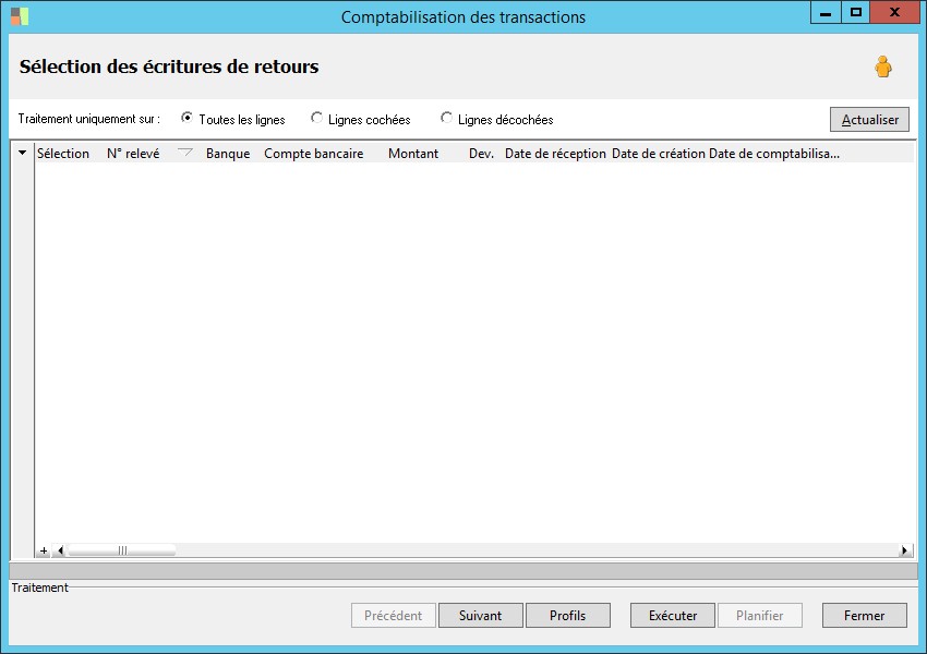 (Sage FRP 1000 Comptabilité) Menu Banque Paiement > Comptabilisation > Comptabilisation des transactions