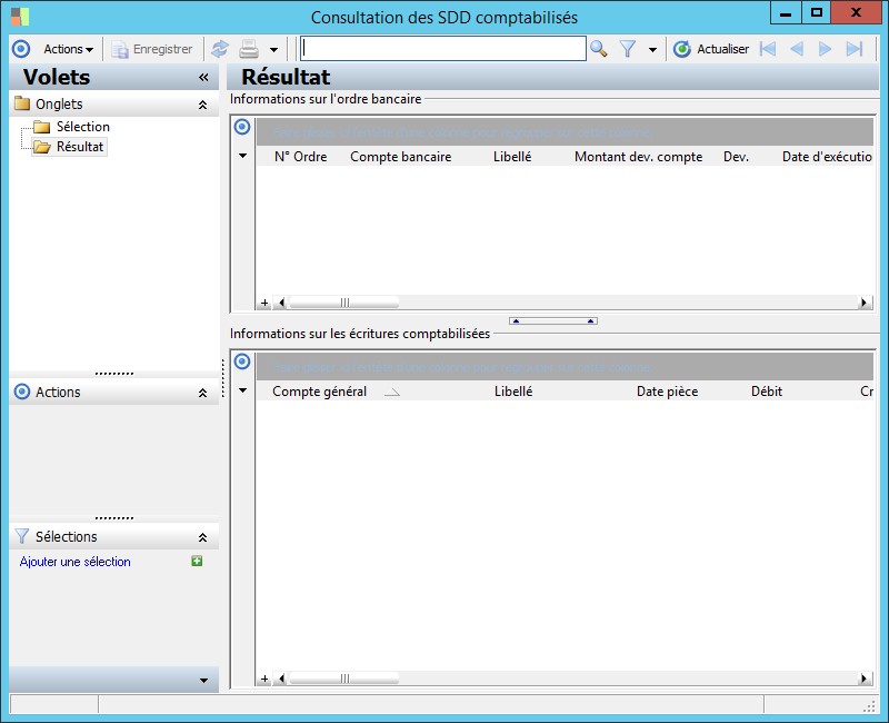 (Sage FRP 1000 Comptabilité) Menu Banque Paiement > Comptabilisation > Consultation des SDD comptabilisés