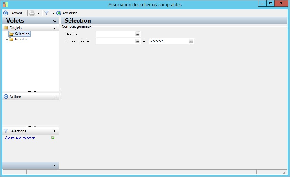 Borne inférieure pour sélection des codes de comptes généraux |