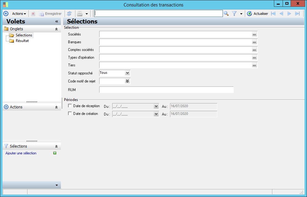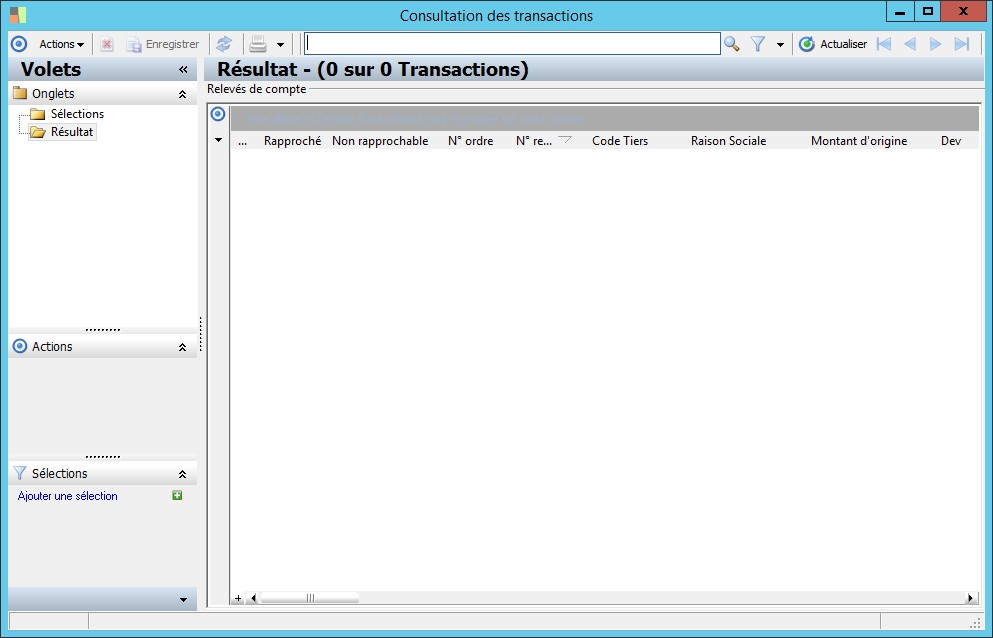 (Sage FRP 1000 Comptabilité) Menu Banque Paiement > Relevés et Notifications > Relevés de notifications > Consultation des transactions