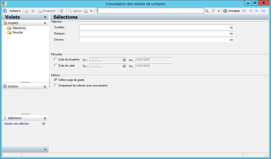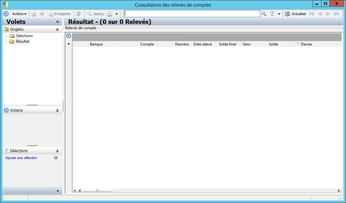 (Sage FRP 1000 Comptabilité) Menu Banque Paiement > Relevés et Notifications > Relevés de comptes > Consultation des relevés de comptes