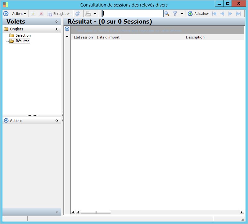 (Sage FRP 1000 Comptabilité) Menu Banque Paiement > Relevés et Notifications > Relevés divers > Consultation de sessions des relevés divers
