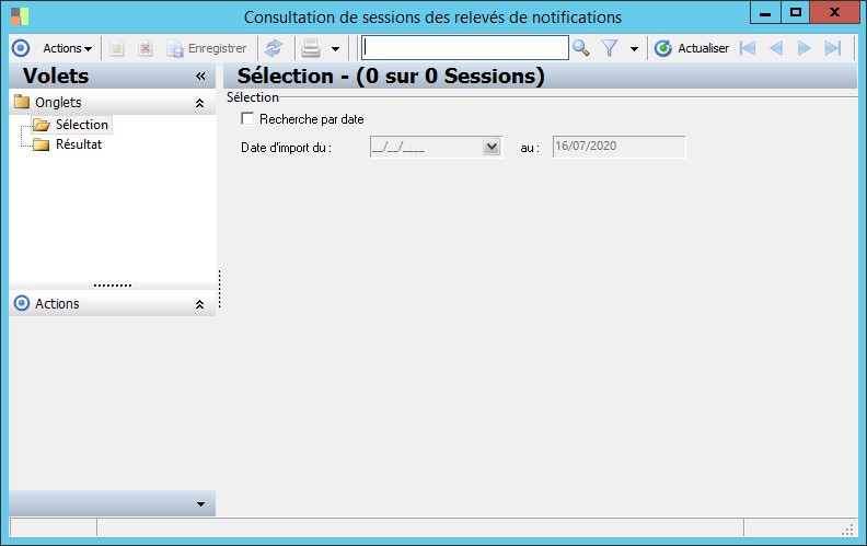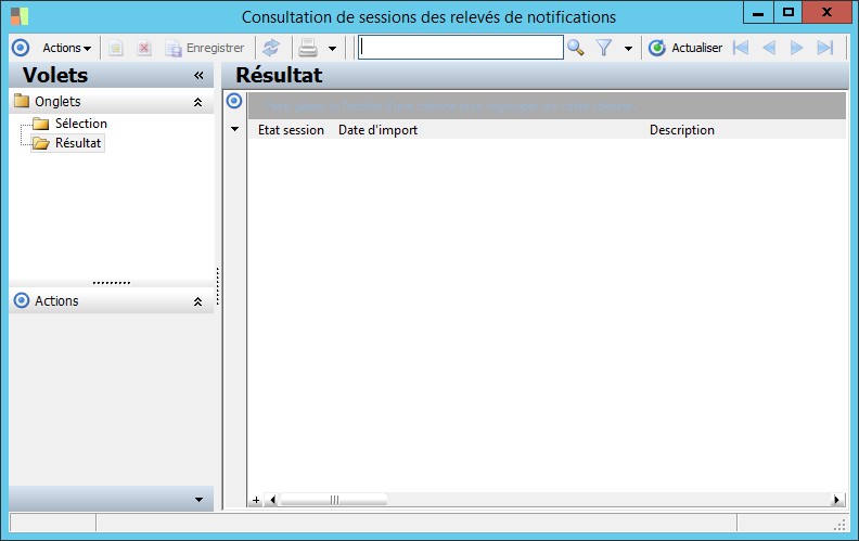 (Sage FRP 1000 Comptabilité) Menu Banque Paiement > Relevés et Notifications > Relevés de notifications > Consultation de sessions des relevés de notifications