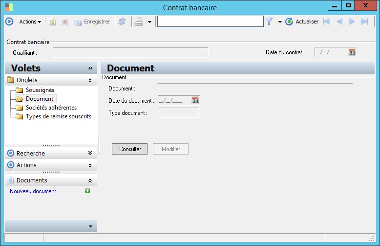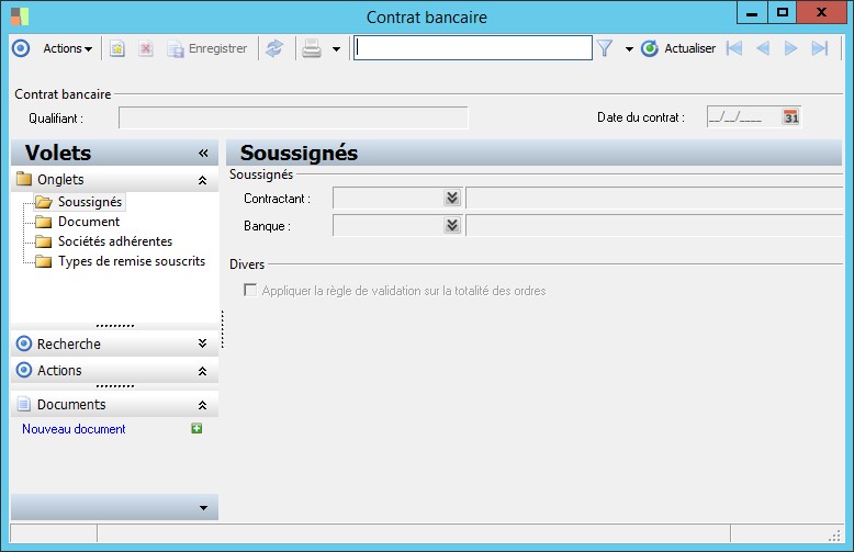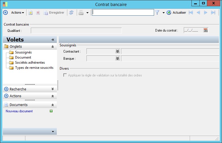 (Sage FRP 1000 Comptabilité) Menu Comptabilité Groupe > Paramètres > Banques > Contrat bancaire