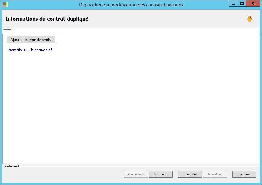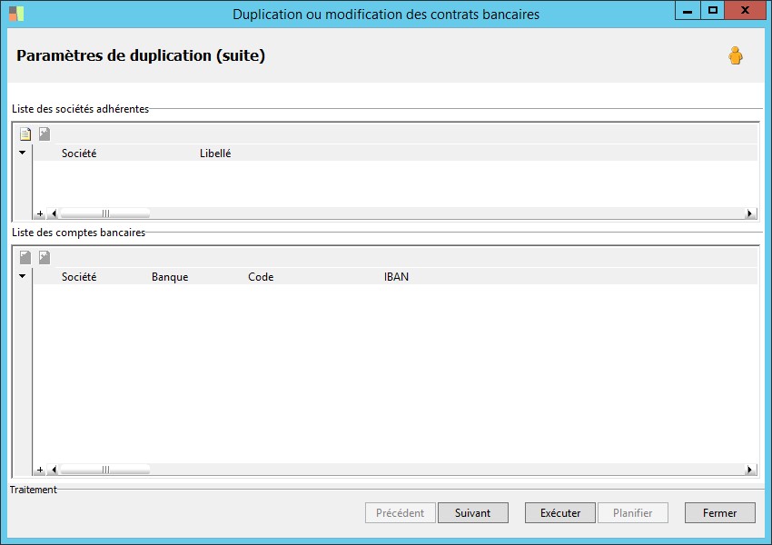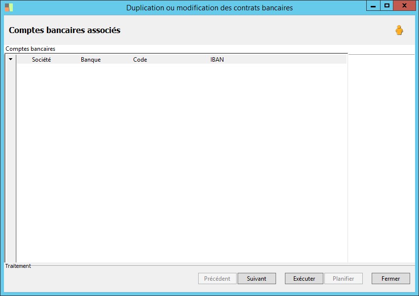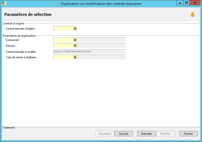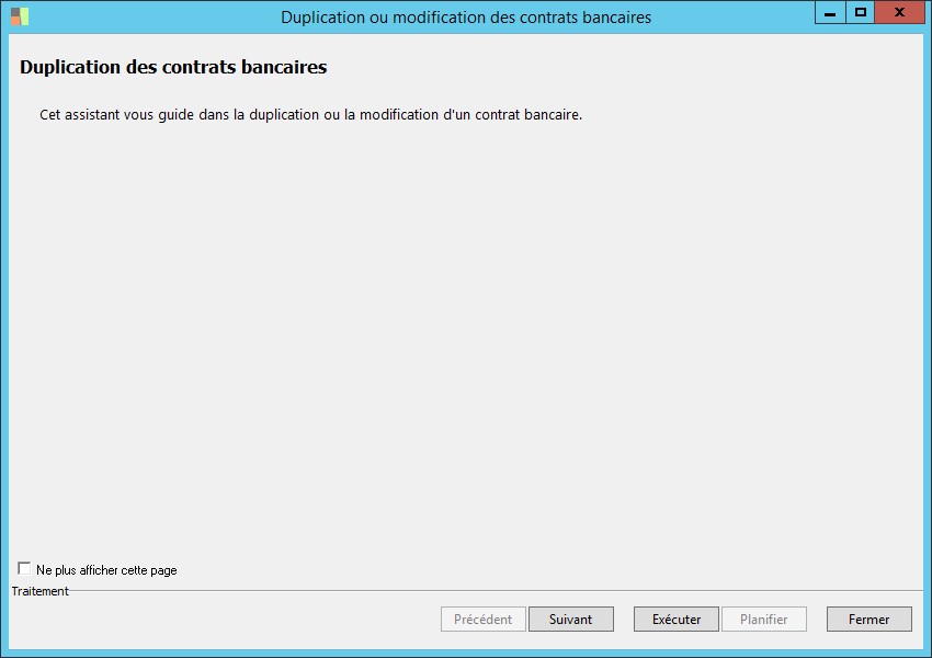 (Sage FRP 1000 Comptabilité) Menu Comptabilité Groupe > Paramètres > Banques > Duplication ou modification des contrats bancaires
