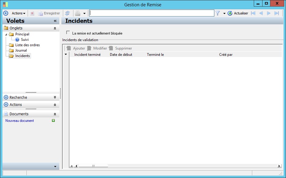 Cette information indique que la remise est bloquée du fait de l'existence d'incidents non terminés. |