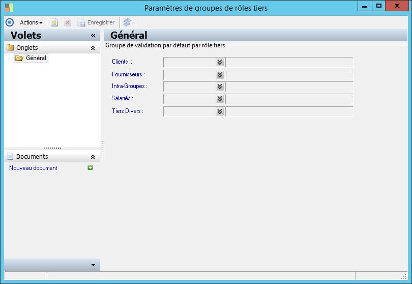 (Sage FRP 1000 Comptabilité) Menu Banque Paiement > Paramètres > Ordres et remises bancaires > Paramètres de groupes de rôles tiers