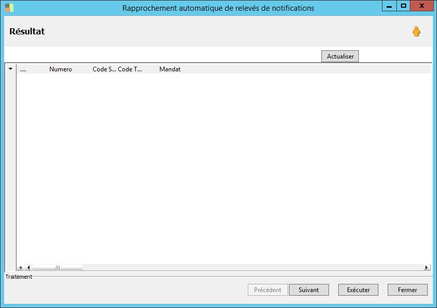 (Sage FRP 1000 Comptabilité) Menu Banque Paiement > Relevés et Notifications > Relevés de notifications > Rapprochement automatique de relevés de notifications