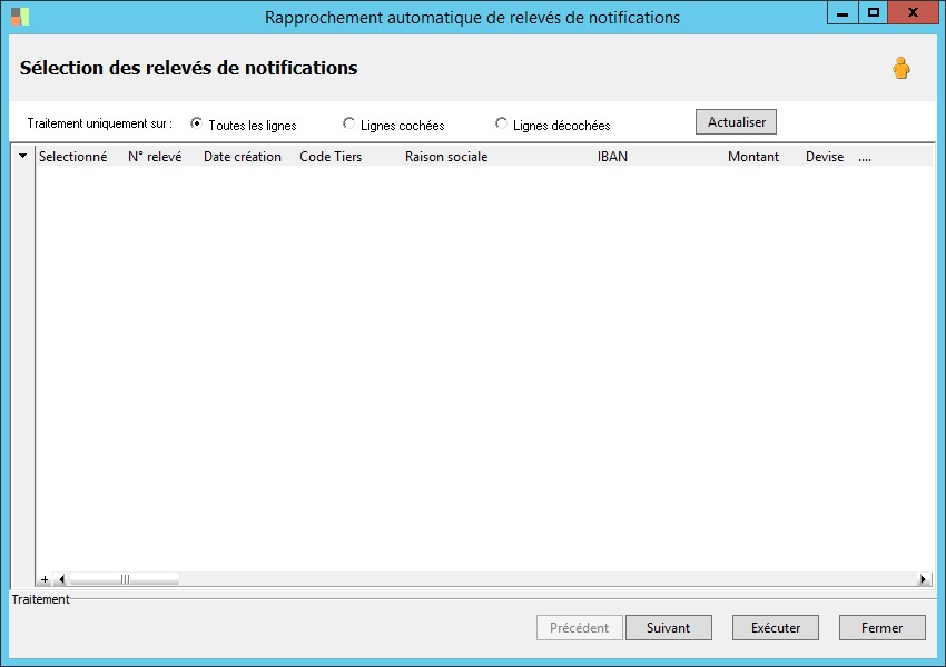 type de traitement : tous, sélectionné, non sélectionné. |