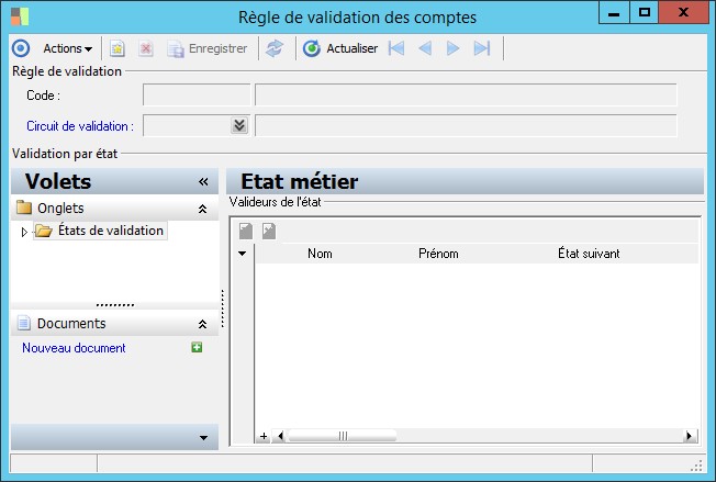 (Sage FRP 1000 Comptabilité) Menu Banque Paiement > Paramètres > Comptes bancaires > Règle de validation des comptes