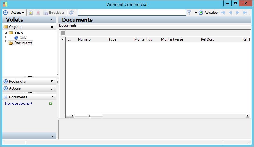 (Sage FRP 1000 Comptabilité) Menu Banque Paiement > Ordres bancaires > Consultation des ordres par type > Virement Commercial
