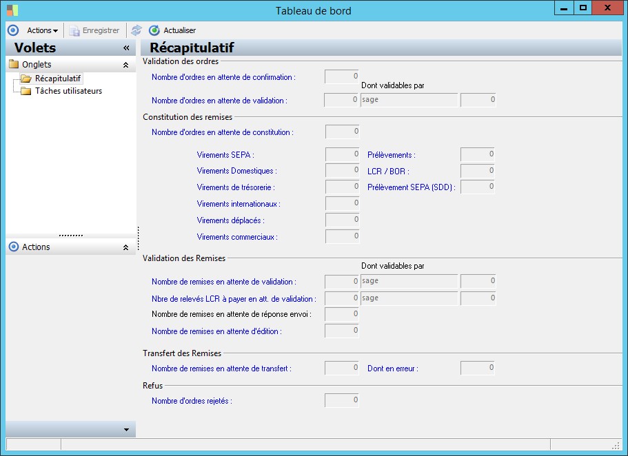 (Sage FRP 1000 Comptabilité) Menu Banque Paiement > Tableau de bord > Tableau de bord