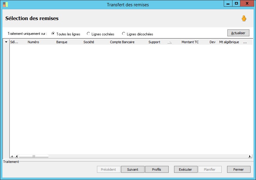 Selon le paramétrage établi, le transfert peut être effectué de façon automatique après la dernière étape du circuit devalidation de la remise. |