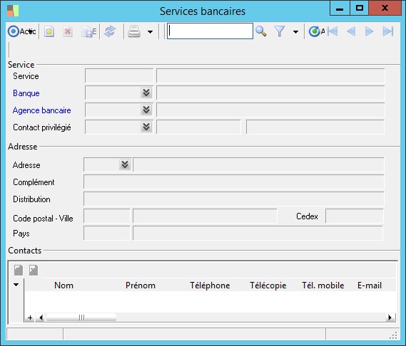 (Sage FRP 1000 Comptabilité) Menu Comptabilité Groupe > Paramètres > Banques > Services bancaires