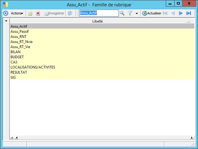 (Sage FRP 1000 Comptabilité) Menu Comptabilité Groupe > Paramètres > Famille de rubrique
