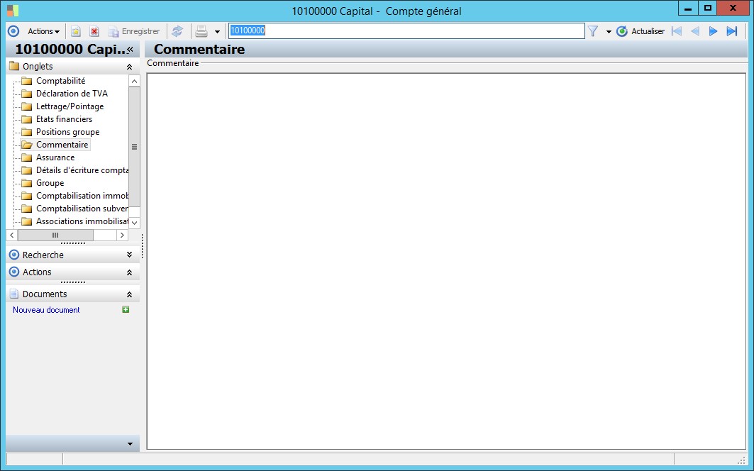Cette zone permet de saisir un commentaire sur le compte sous forme de texte. |