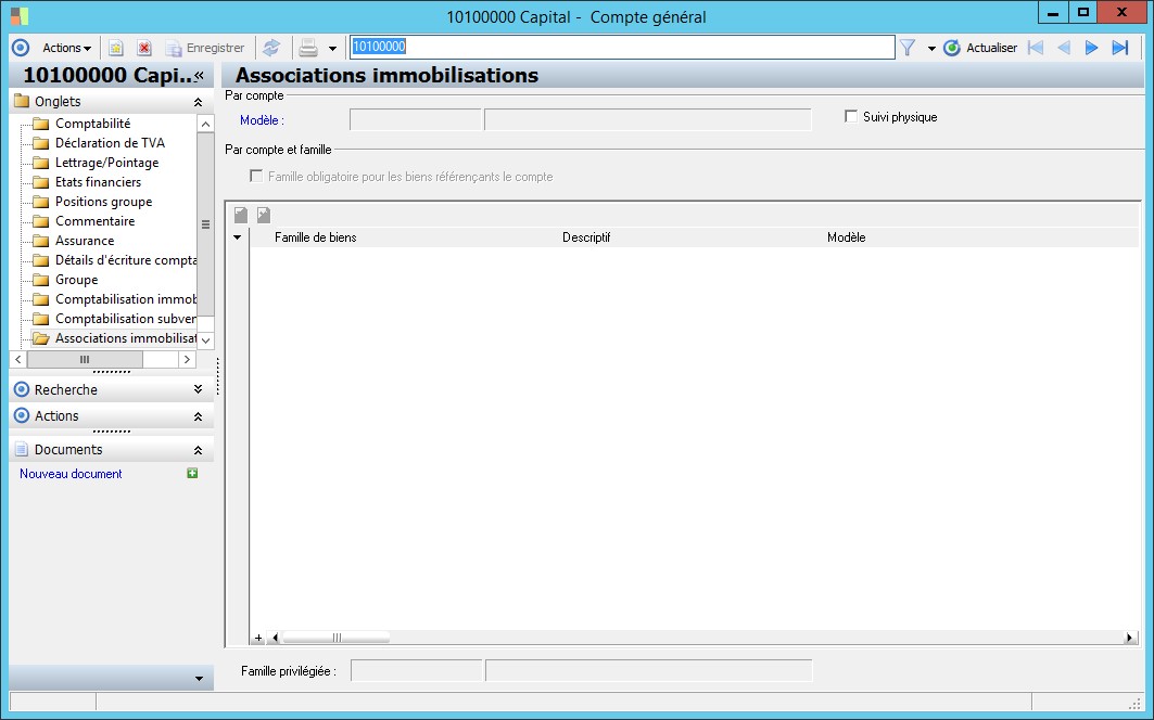 Il est possible d'associer une famille de bien privilégiée à un compte général. |
