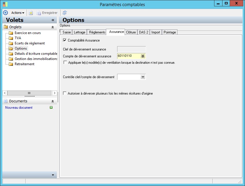Si vous souhaitez gérer la comptabilité assurance, vous devez cocher l'option "comptabilité assurance". |