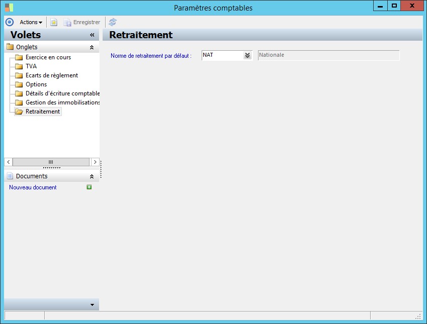 Cette norme est utilisée par défaut en saisie d'écritures de retraitement. Uniquement une norme active et différente d'Exploitation peut être sélectionnée. La norme renseignée ne pourra pas être désactivée. |