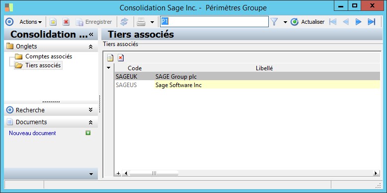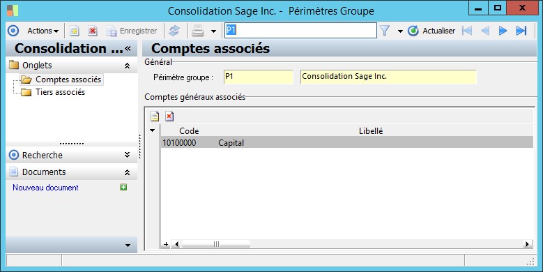 (Sage FRP 1000 Comptabilité) Menu Comptabilité Groupe > Paramètres > Groupe > Périmètres Groupe
