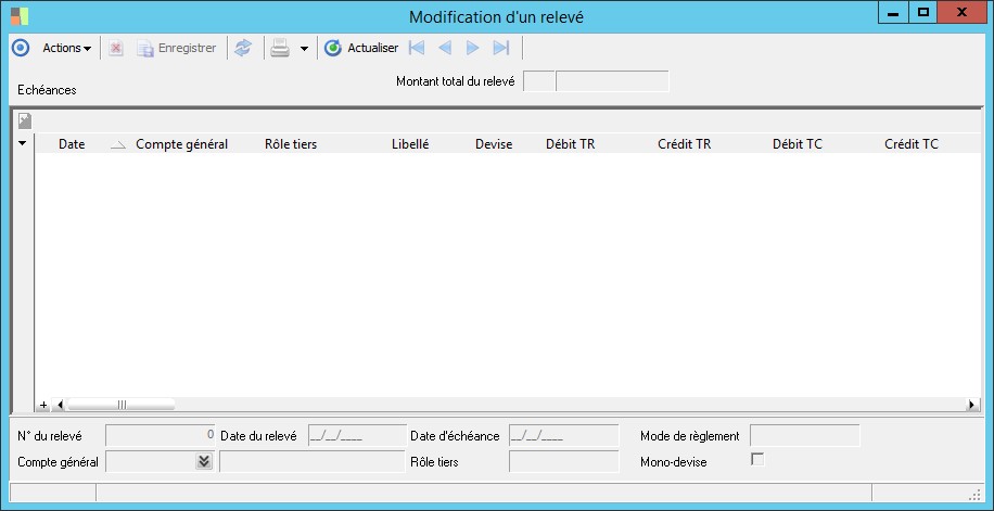 (Sage FRP 1000 Comptabilité) Menu Comptabilité > Echéancier > Encaissements > Modification d'un relevé