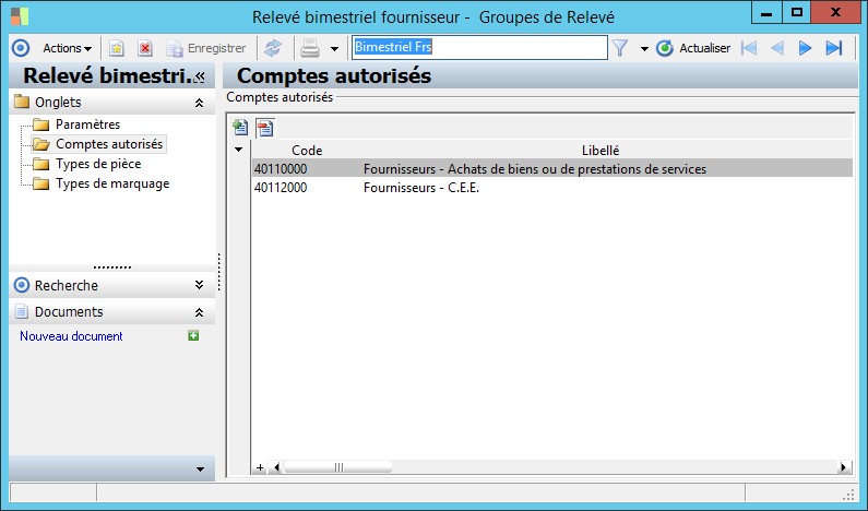 Permet de proposer un compte par défaut lors de la génération des relevés pour ce groupe de relevés.Il est possible lors du traitement de modifier la valeur proposée. |
