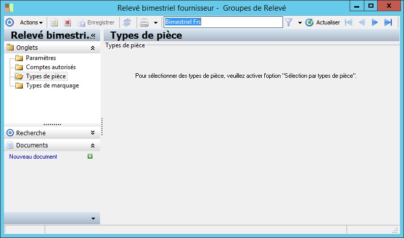 Cette option permet de sélectionner un ou plusieurs types de pièce à prendre en compte pour la génération des relevés. Si cette option est activée, il est obligatoire de sélectionner au moins un type de pièce.Uniquement les échéances correspondant aux types de pièce sélectionnés seront prises en compte par le traitement.Cette option ne peut pas être cumulée avec l'option "Relevé de factures". |