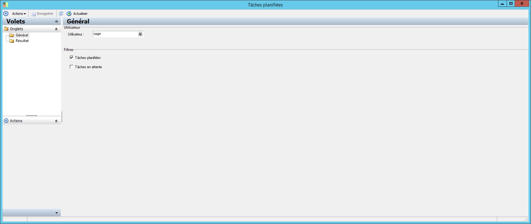 (Sage FRP 1000 Comptabilité) Menu Comptabilité Groupe > Outils > Tâches planifiées