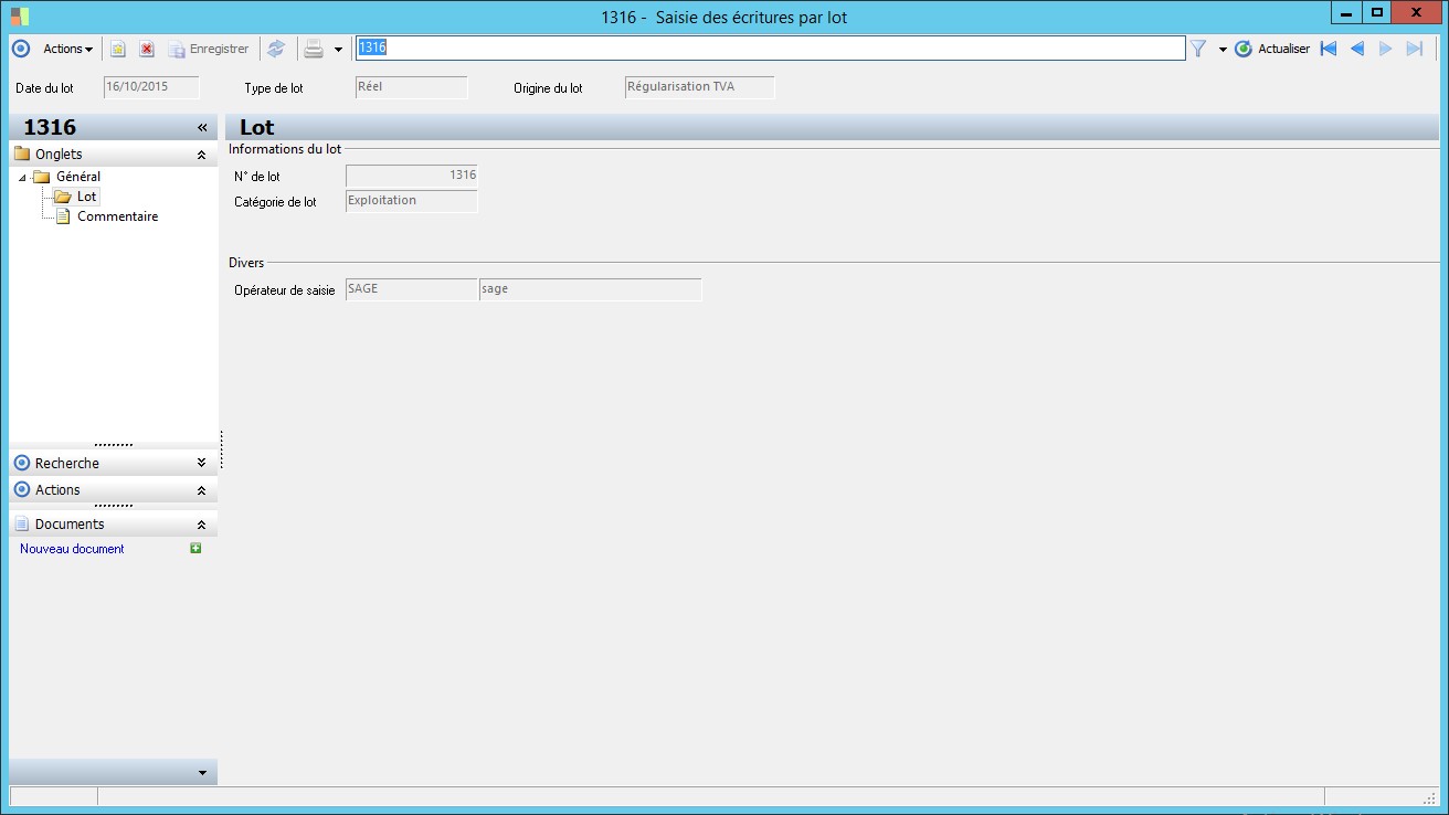 Il existe deux catégories de lot :- Exploitation : pour les lots contenant des pièces d'exploitation comme des écritures d'achat ou de vente par exemple.- Retraitement : pour les lots contenant des pièces de nature nationale ou IAS / IFRS correspondant à des écritures de fin de période comme les amortissements par exemple.Cet attribut a pour but de ne pas mélanger les pièces selon le mode de saisie utilisé(Exploitation ou Retraitement). |