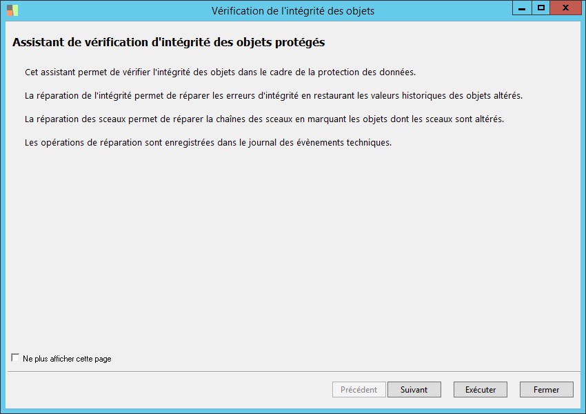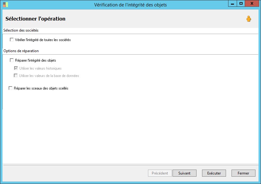 (Sage FRP 1000 Comptabilité) Menu Comptabilité Groupe > Outils > Vérification de l'intégrité des objets