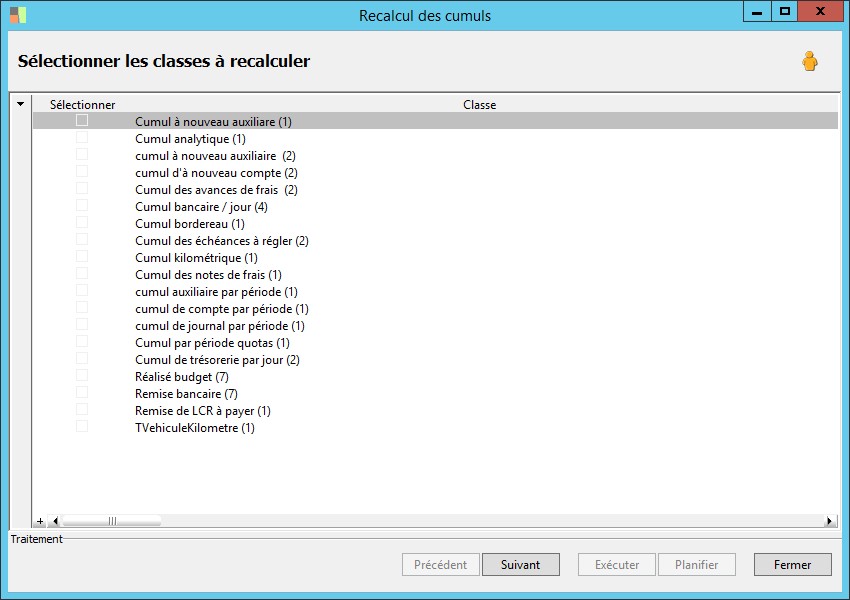 (Sage FRP 1000 Comptabilité) Menu Comptabilité Groupe > Outils > Recalcul des cumuls