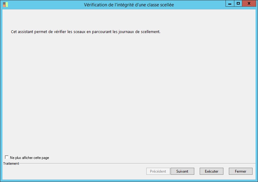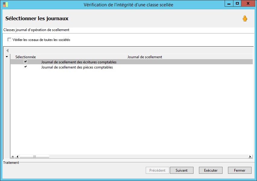 (Sage FRP 1000 Comptabilité) Menu Comptabilité Groupe > Outils > Vérification de l'intégrité d'une classe scellée