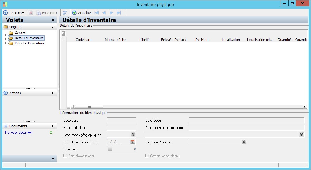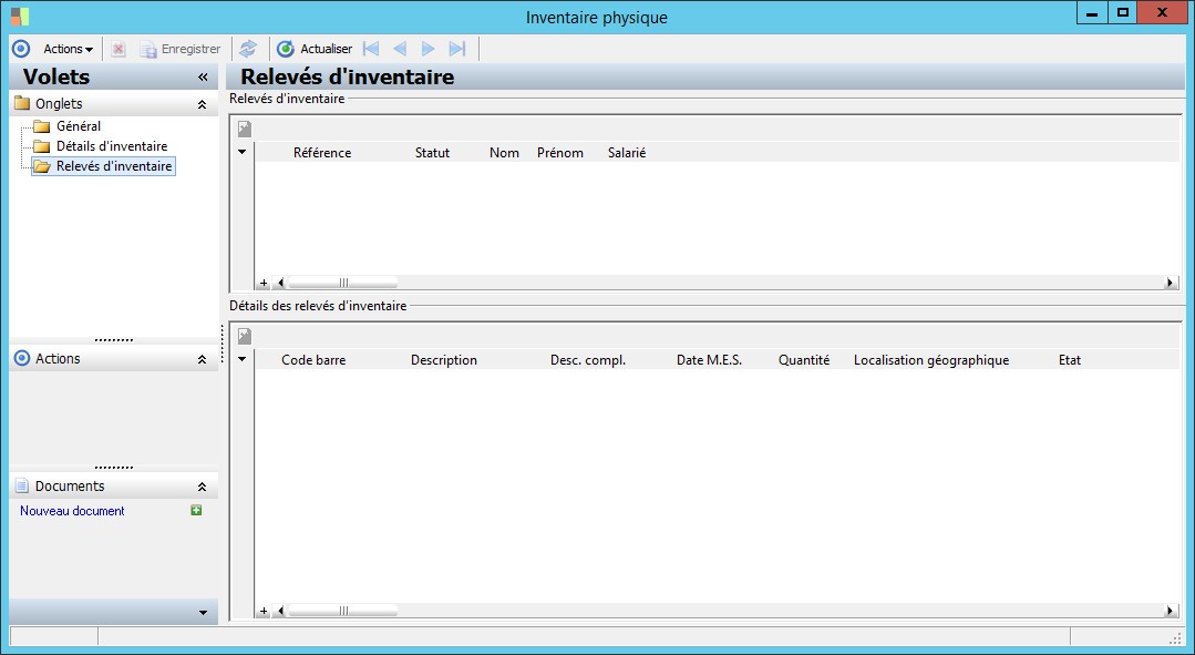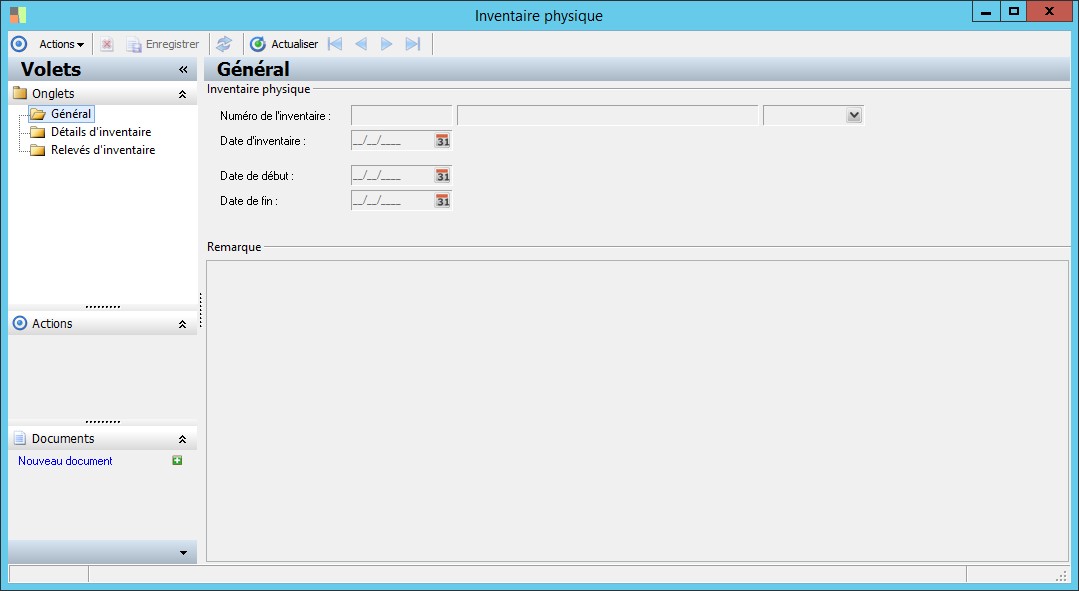 Cette zone indique le statut de l'inventaire. Cette information n'est jamais saisissable et est modifiable via une action dédiée. |
