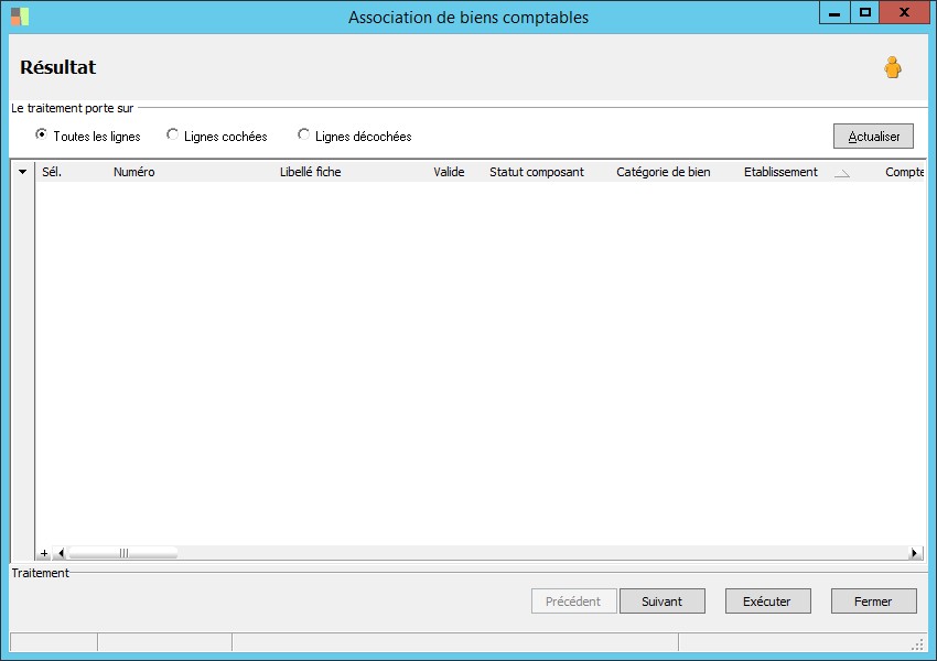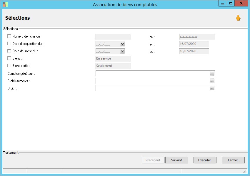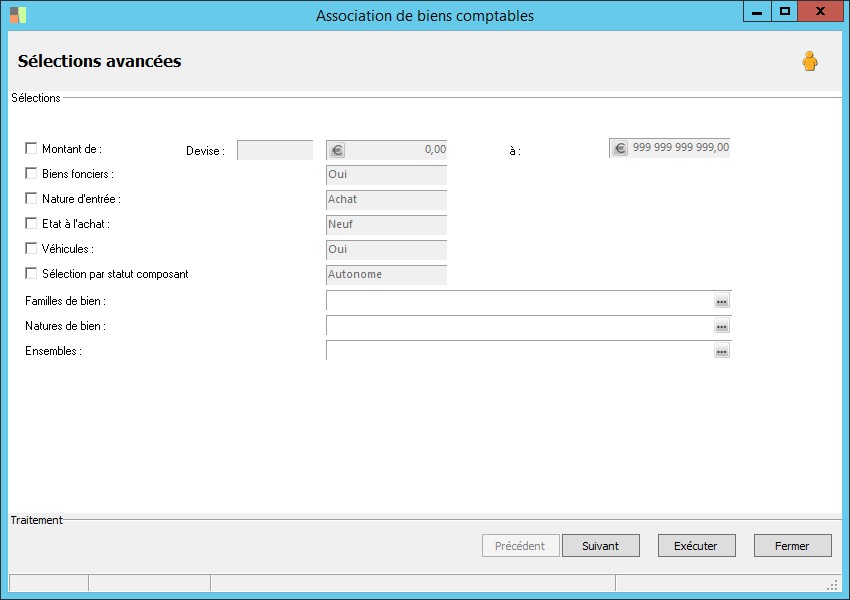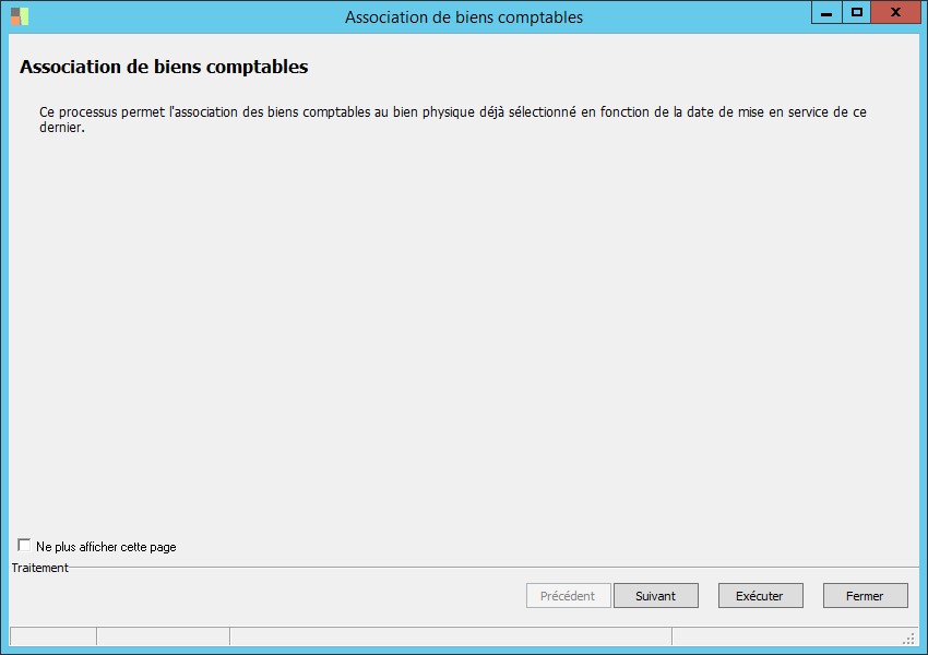 (Sage FRP 1000 Comptabilité) Menu Immobilisations > Suivi physique > Association de biens comptables