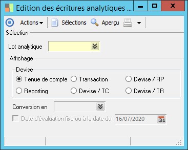Cet élément est lié au choix de la devise de conversion. Si la case est cochée, la date d'évaluation de la devise de conversion sera variable par rapport à la date d'écriture du montant à modifier. |