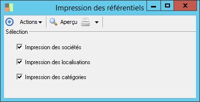 Cette case, lorsqu'elle est cochée, permet d'imprimer le référentiel des sociétés.