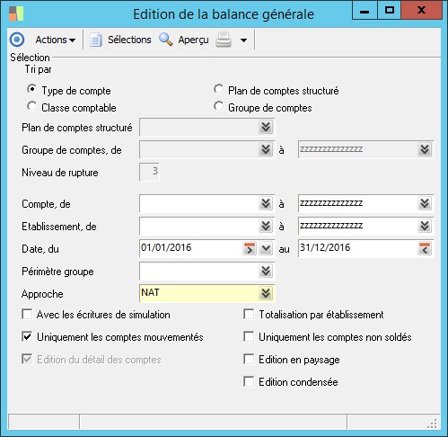 Lorsque la balance générale est triée par classe comptable, il est nécessaire d'indiquer quel est le niveau de rupture souhaité sur les classes comptables.