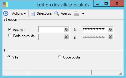 (Sage FRP 1000 Comptabilité) Menu Comptabilité Groupe > Paramètres > Généraux > Edition des villes/localités
