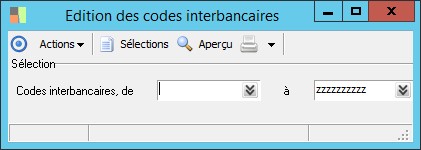 (Sage FRP 1000 Comptabilité) Menu Comptabilité > Paramètres > Banques > Edition des codes interbancaires