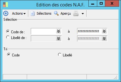 (Sage FRP 1000 Comptabilité) Menu Comptabilité Groupe > Paramètres > Généraux > Edition des codes N.A.F.