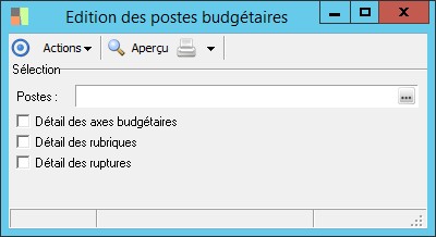 (Sage FRP 1000 Comptabilité) Menu Budget > Paramètres > Edition des postes budgétaires
