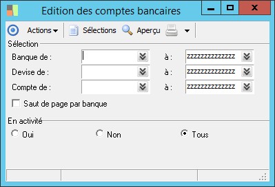 Indiquer le niveau d'activité des comptes bancaires sélectionnés. Il est possible d'éditer que les comptes actifs, que les comptes inactifs ou tous les comptes.